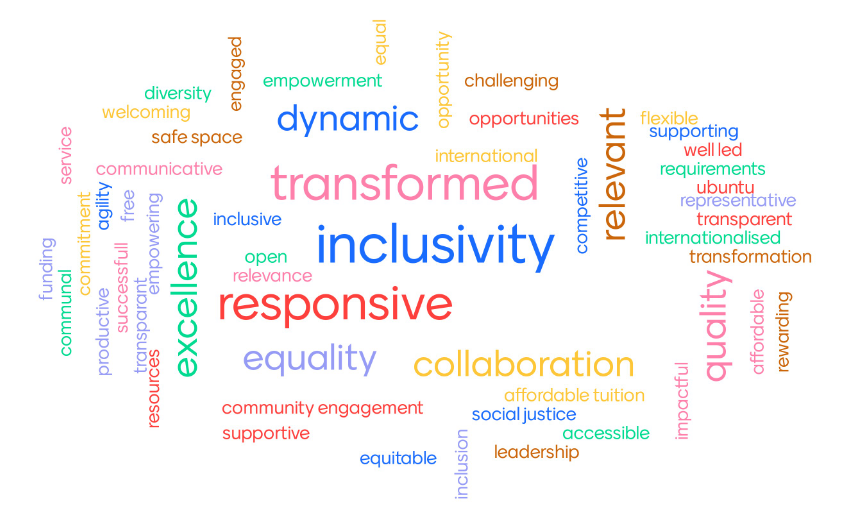 What are at least 5 (one word) characteristics that an ideal higher education system for South Africa would display? (WordCloud built based on participant inputs)