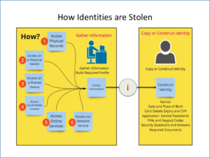 Where information is kept determines how it can be accessed. Different strategies may be followed to gain access to information that can assist in profile building and ultimately identity theft. Information is distributed. Some information is kept as a physical record, some as an online record and some as both.
